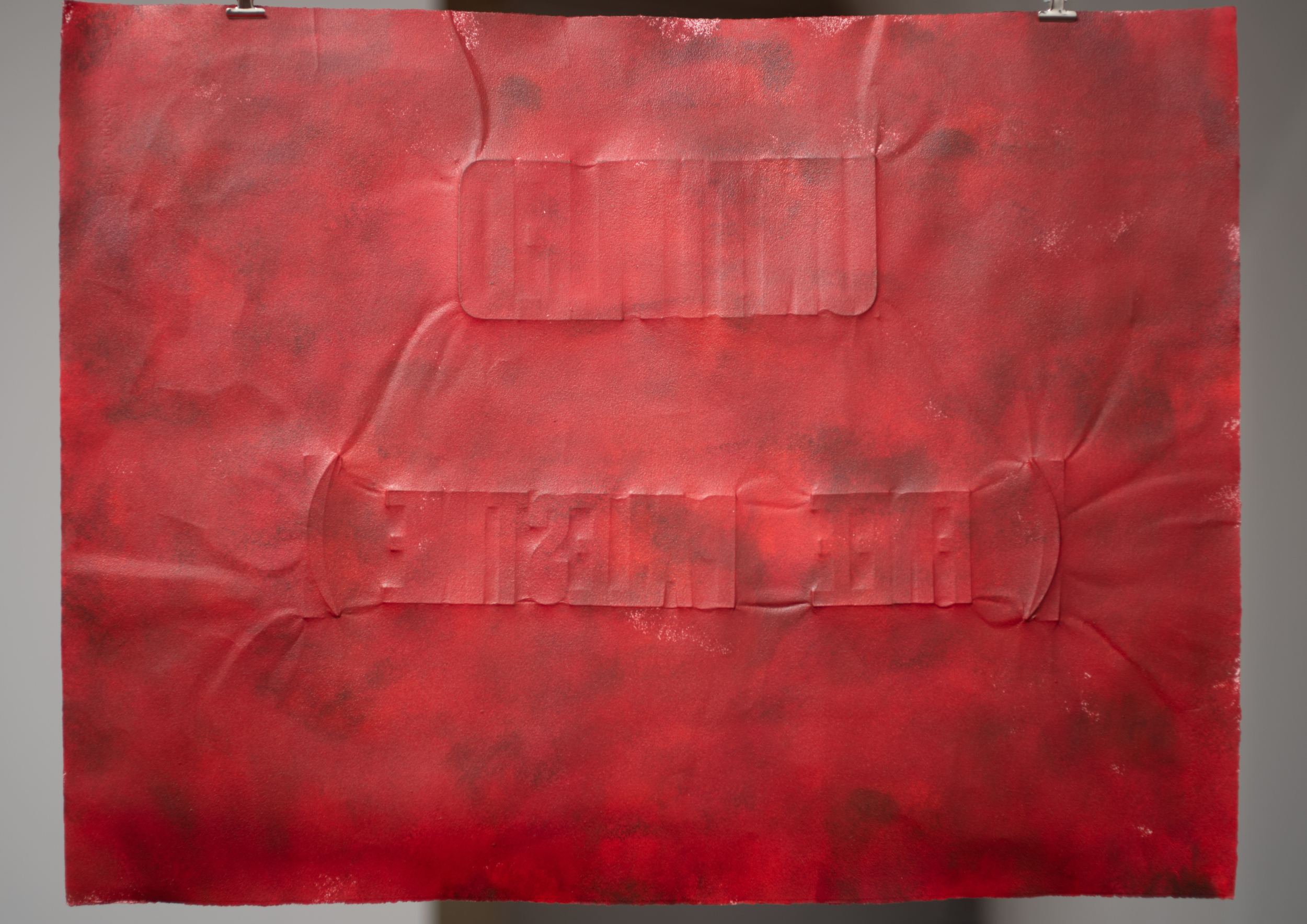 Letterpress & Red Acryl on paper, Steel thread, Paper clips